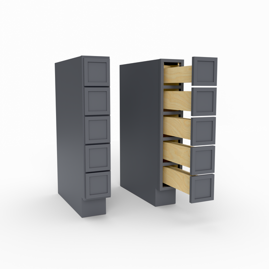 Slim Frame Shaker Base Spice Five Drawer Cabinet 6" W x 34.5" H x 24" D