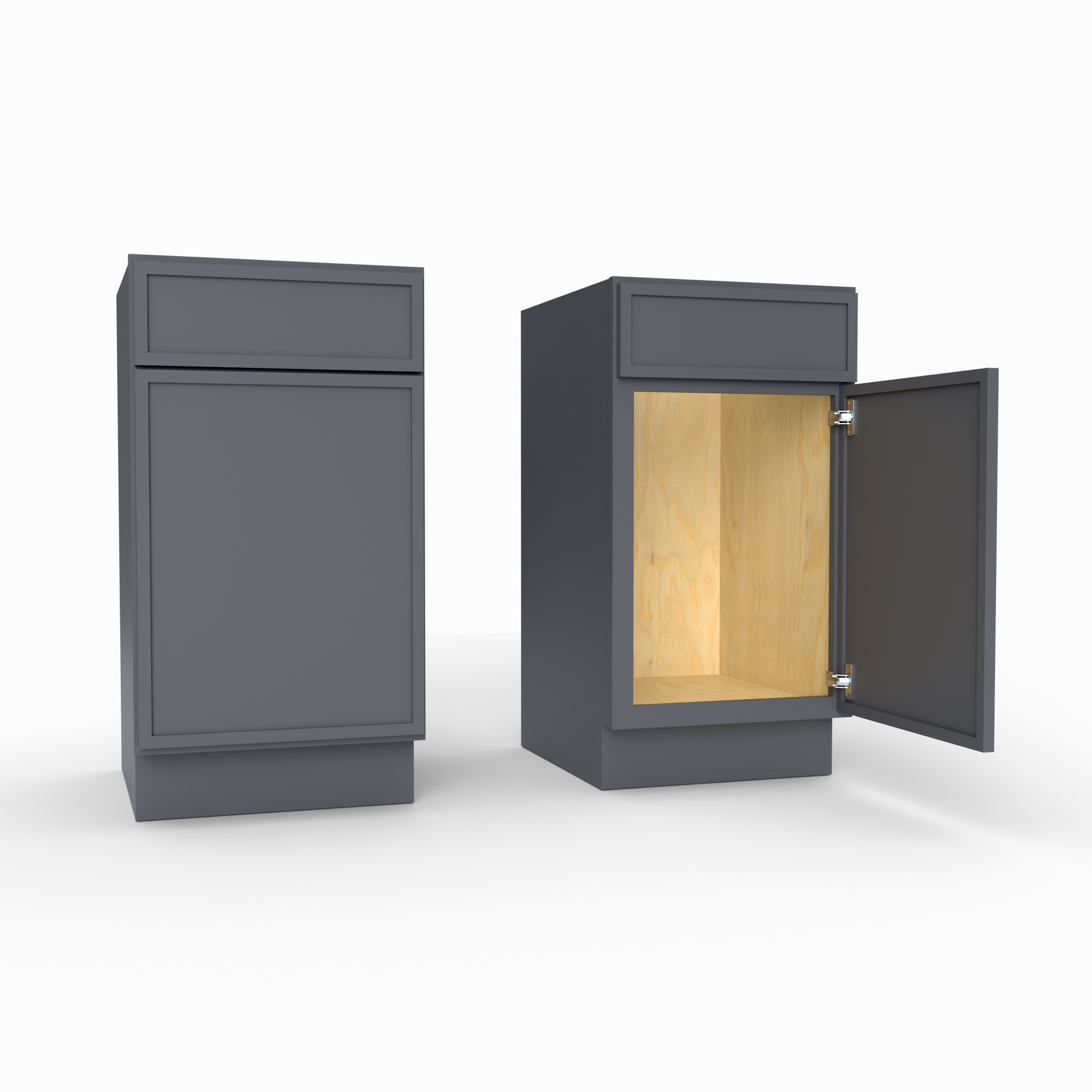 This rendering shows optional color-matched side panels and toe kick moulding, available separately here. This cabinet comes with pure white sides and toe kick. See description for details. Cabinet shown open and closed for display purposes. Only one cabinet is included with purchase.