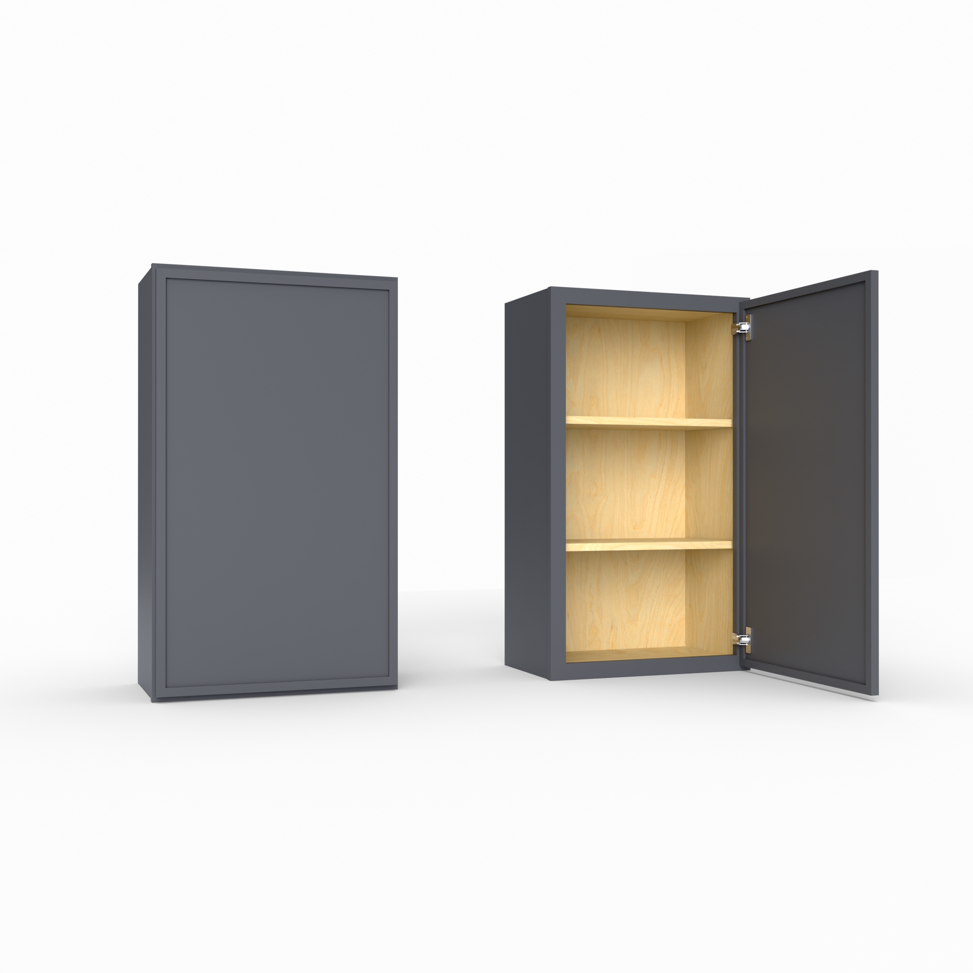 - Full overlay 5-piece doors with 3-inch wide by ¾-inch thick shaker stiles and rails.