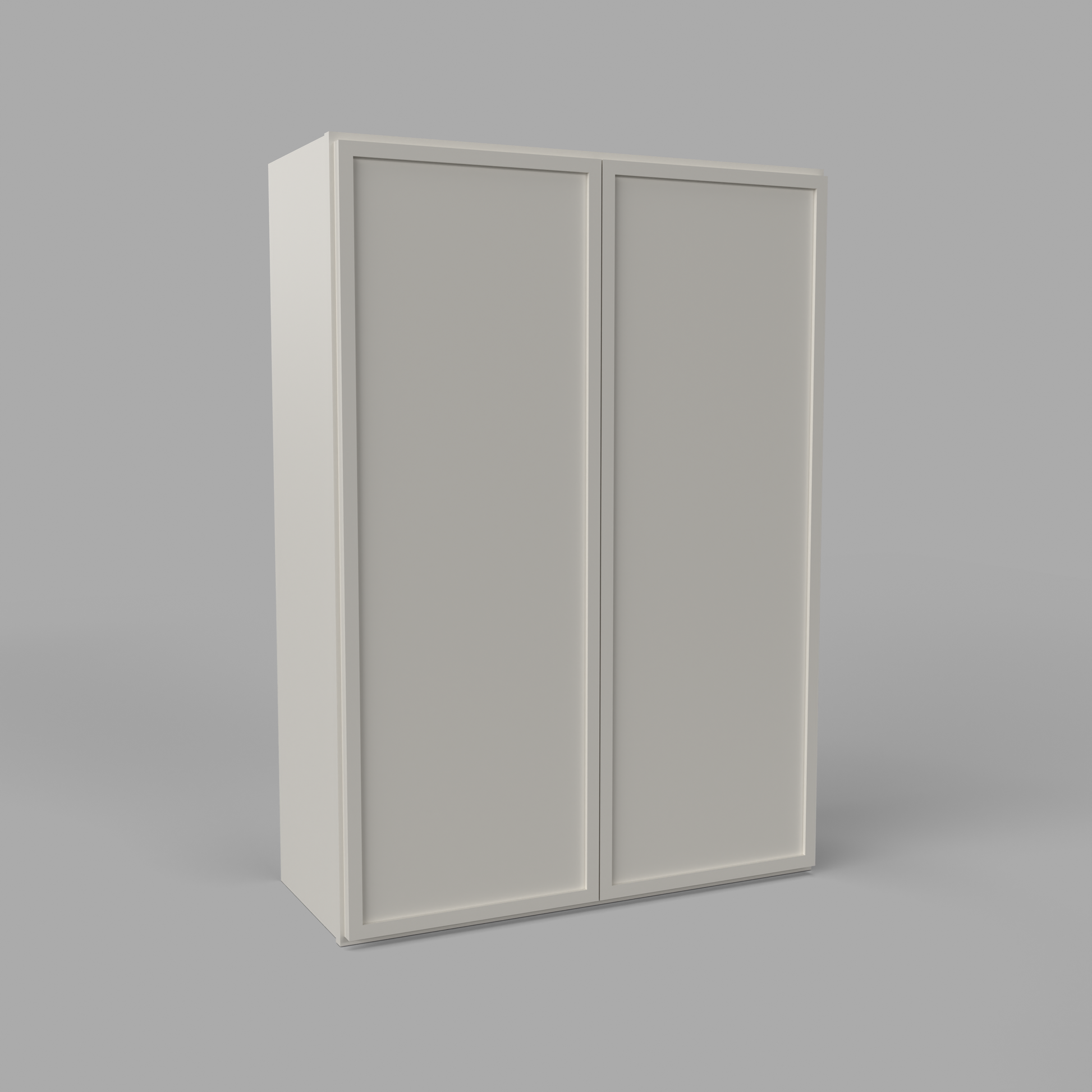 Our universal cabinet boxes (carcasses) have Pure White painted exterior sides. Only the fronts (face frame, doors, and drawer fronts) will be finished in your chosen color or stain. For exposed cabinet sides, order a color-matched skin panel.