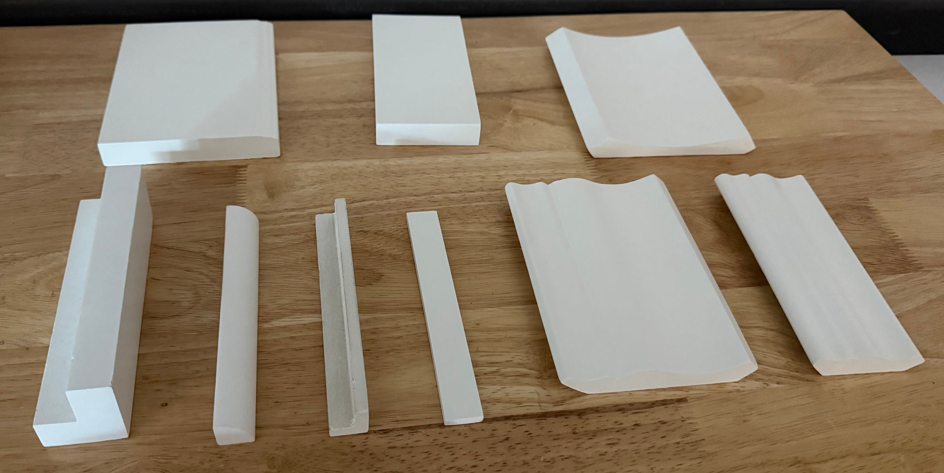 Nine 3" samples of our different moulding options: